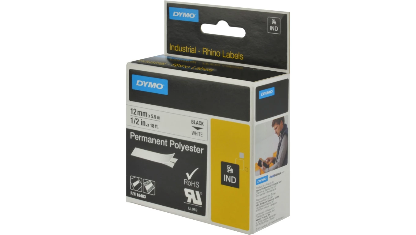 Taśma poliestrowa trwała do drukarek 12mm x 5,5m czarna na białym S0718210 18483