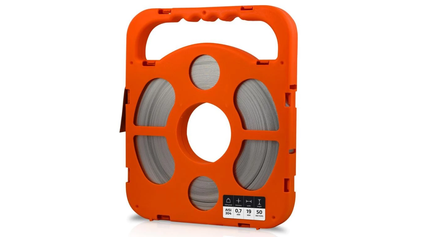 Taśma ze stali nierdzewnej 19mmx0,7mm dł. 30m (gat. 304, plastik)