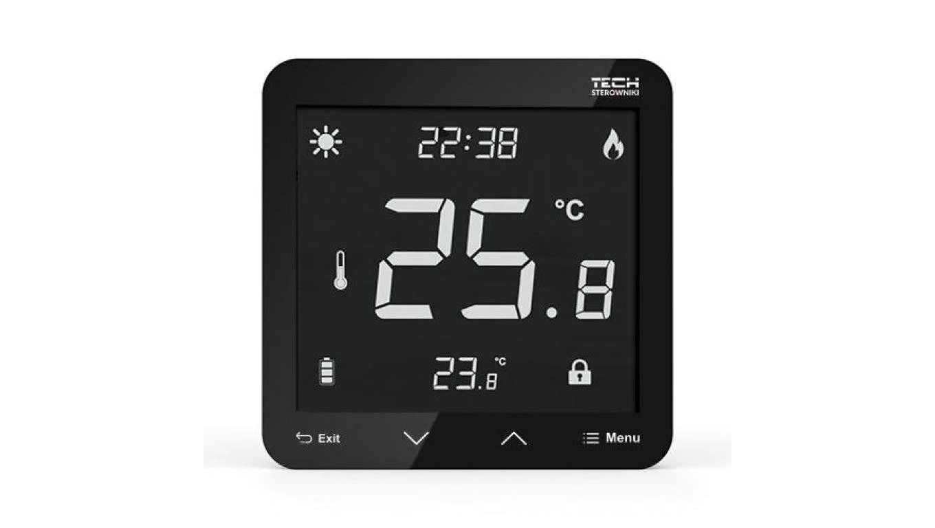 TECH ST-297 V3 - Regulator pokojowy przewodowy dwustanowy kolor czarny szklany
