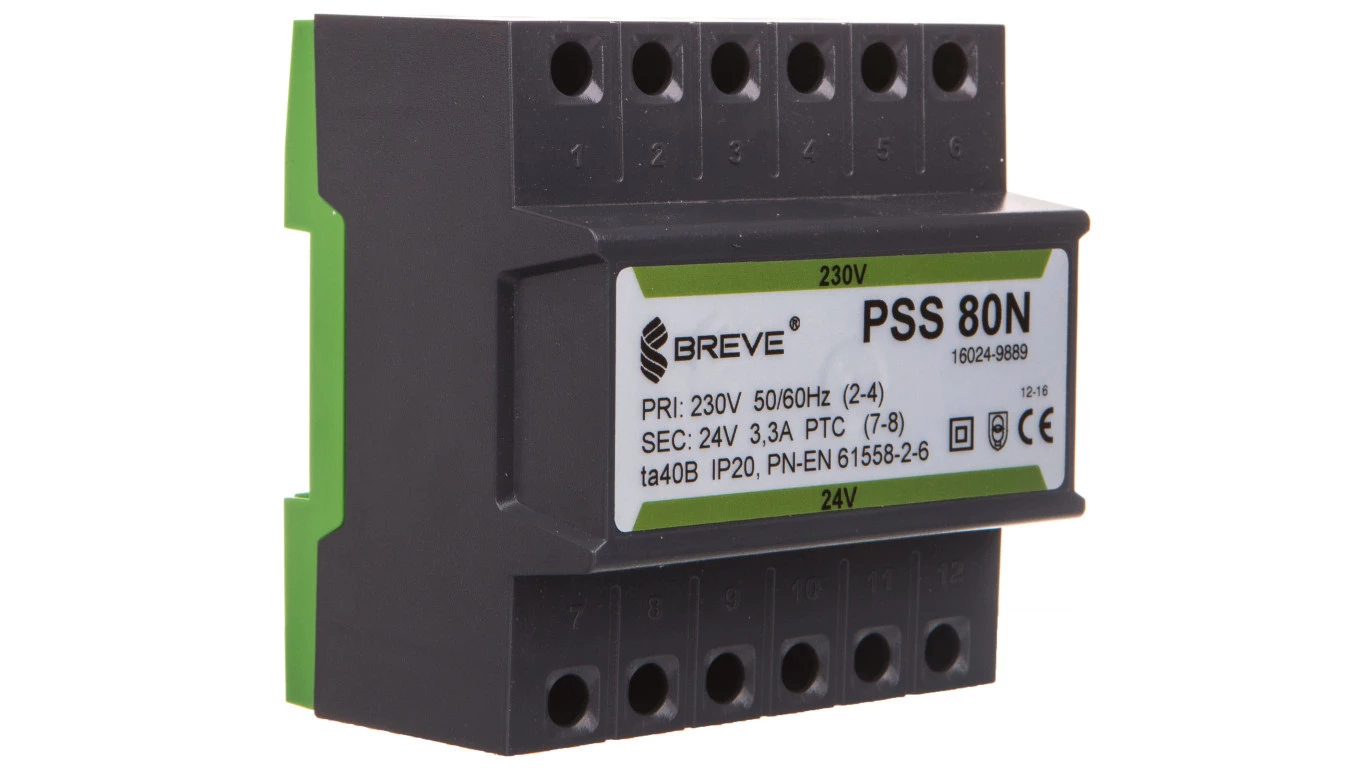 Transformator 1-fazowy modułowy bezpieczeństwa PSS 80N 230/ 24V 3,3A, na szynę DIN, IP20, Ta 40, 16024-9889