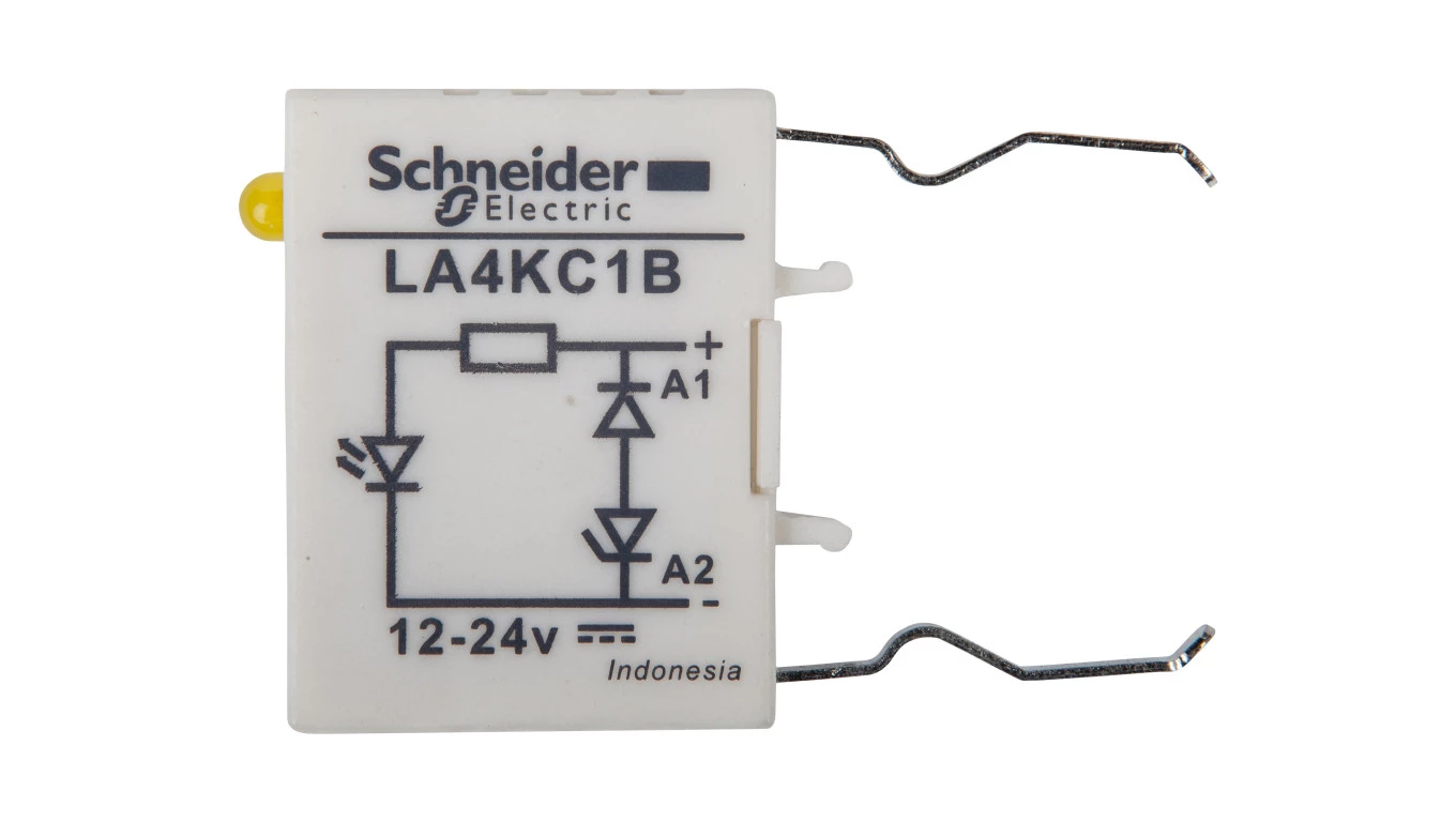 Moduł ogranicznika, diody 12x24V AC/DC o numerze katalogowym LA4KC1B w kategorii Ograniczniki przepięć - akcesoria, Ograniczniki przepięć. Produkt wyprodukowany przez markę SCHNEIDER ELECTRIC, seria LA4.