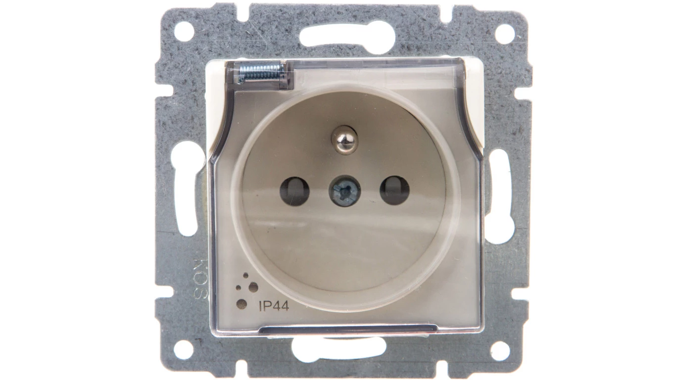VENA Gniazdo bryzgoszczelne z/u IP44 z przesłonami klapka transparentna krem 510339