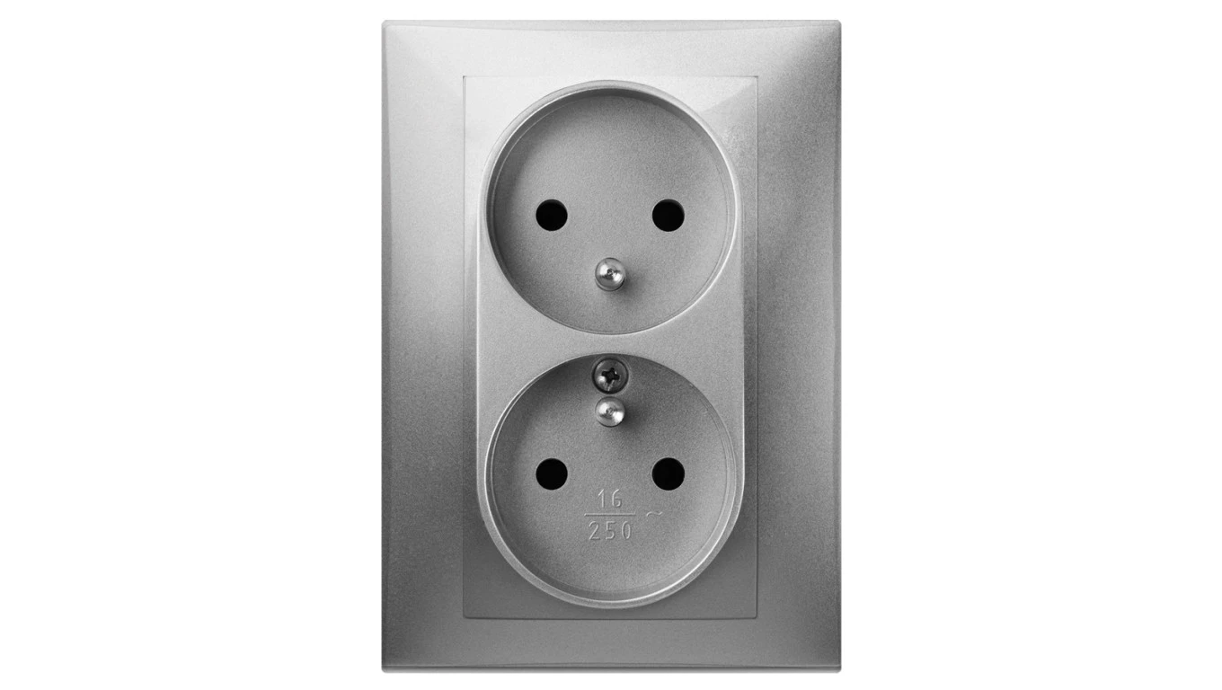 Vestra Gniazdo podwójne 2x2P+Z monolit z ramką podtynkowe IP20 srebrny 3835-06