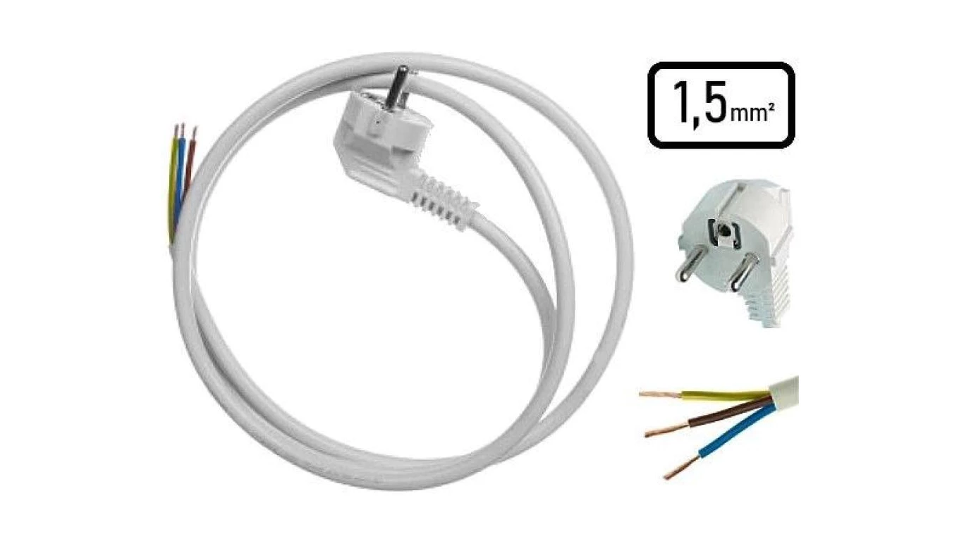 VIPlast Przewód OMY 3x1,5 5m z wtyczką kątową uni-schuko biały
