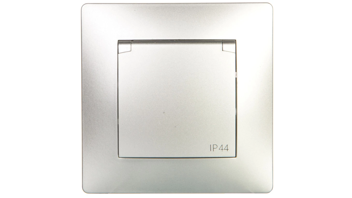 VOLANTE Gniazdo pojedyncze z/u 16A 230V IP44 srebrne 2636-06