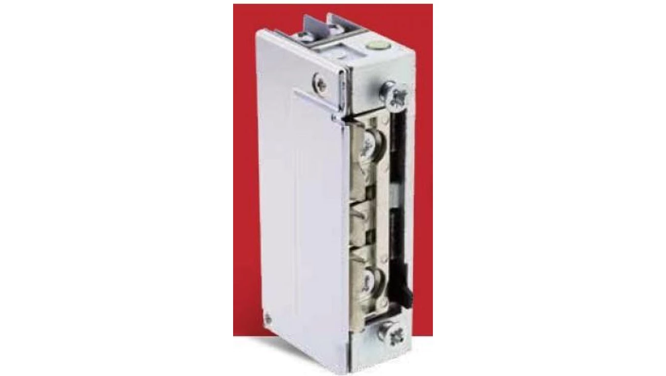 Wąski eklektrozaczep 16mm symetryczny z wyślizgiem i blokadą 10-24V AC/DC