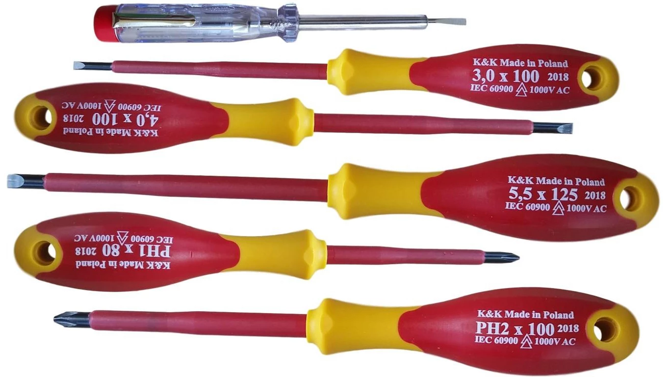 Wkrętak MAKIT śrubokręt elektryczny izolowany VDE 1000V 5 szt. + próbnik napięcia KK23GNPH