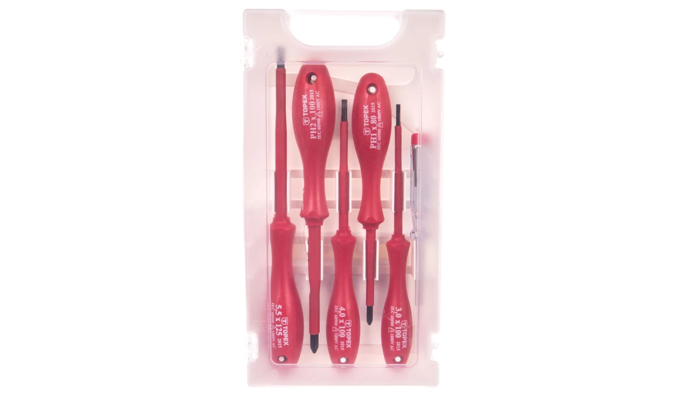 Wkrętaki 3x100mm 4x100mm 5,5x100mm PH1x80mm PH2x100mm próbnik 125-250V izolacja do 1000V (zestaw 6 szt.) 39D155