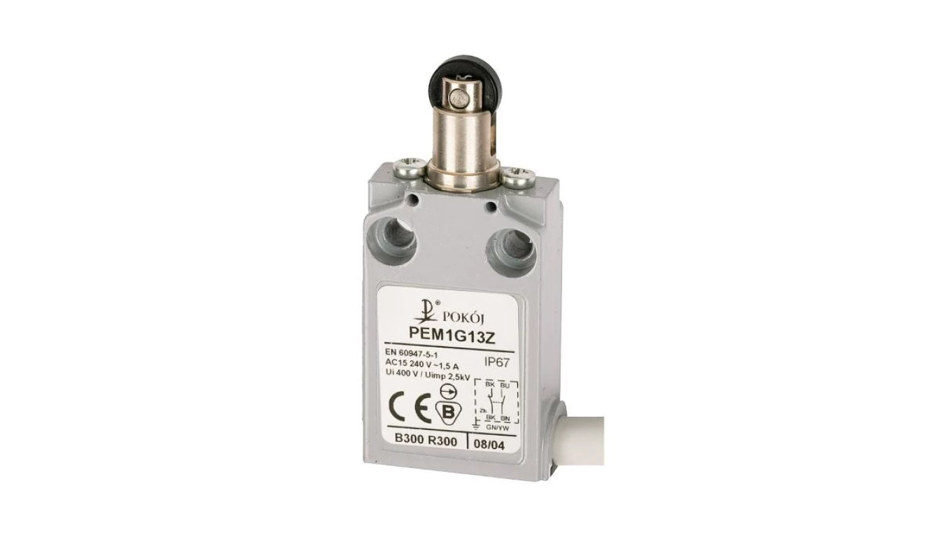Wyłącznik krańcowy 1R 1Z migowy popychacz metalowy z rolką z tworzywa równoległą Ø12 PEM1G13Z A37-A84Z