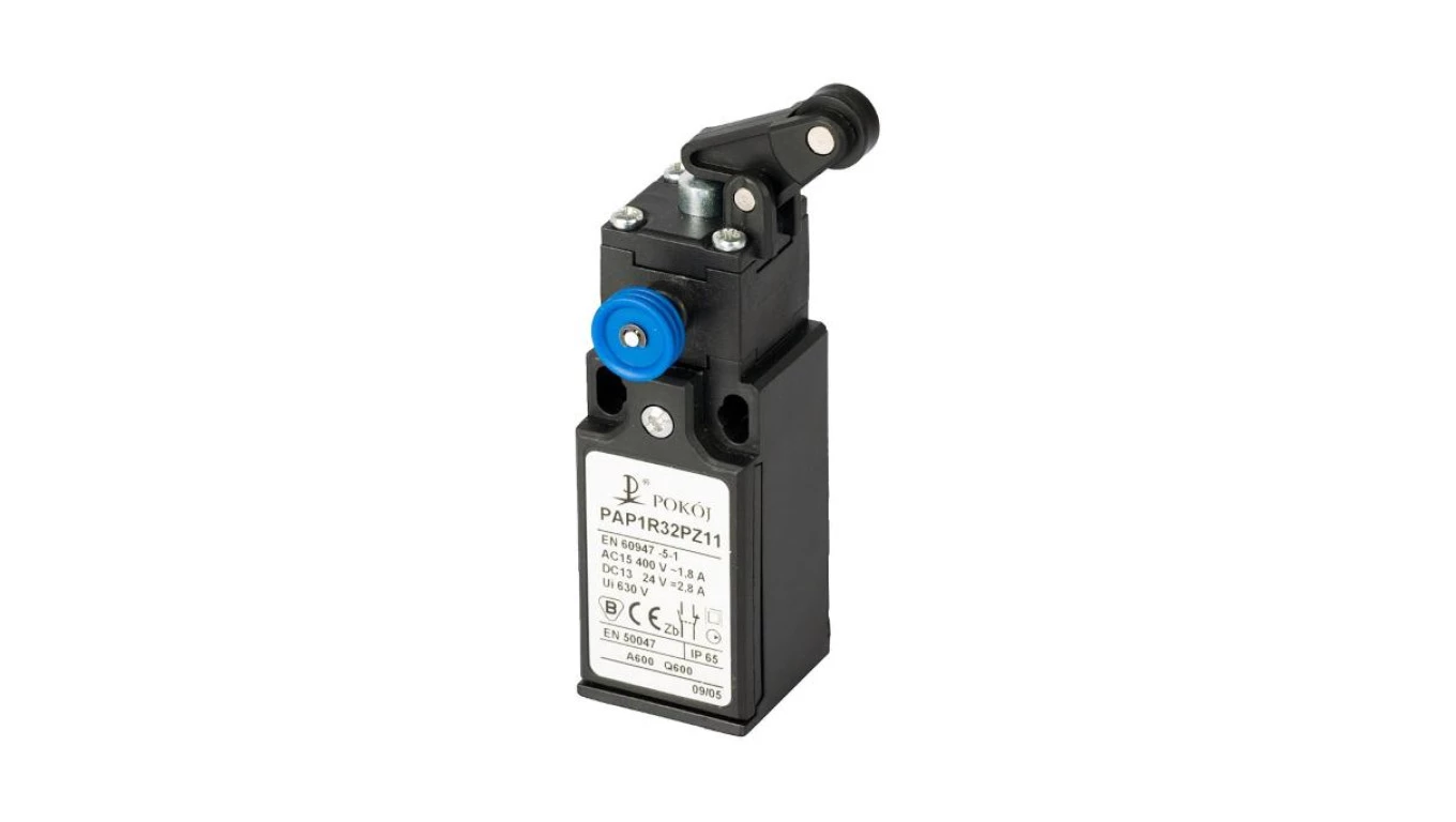 Wyłącznik krańcowy 1R 1Z migowy popychacz stalowy dźwignia pionowa z rolką Ø12,5 z resetem PAP1R32PZ11 A37-1R40