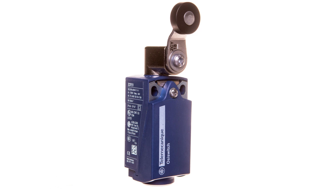 Wyłącznik krańcowy 1R 1Z migowy tworzywo dźwignia z rolką XCKP2118P16