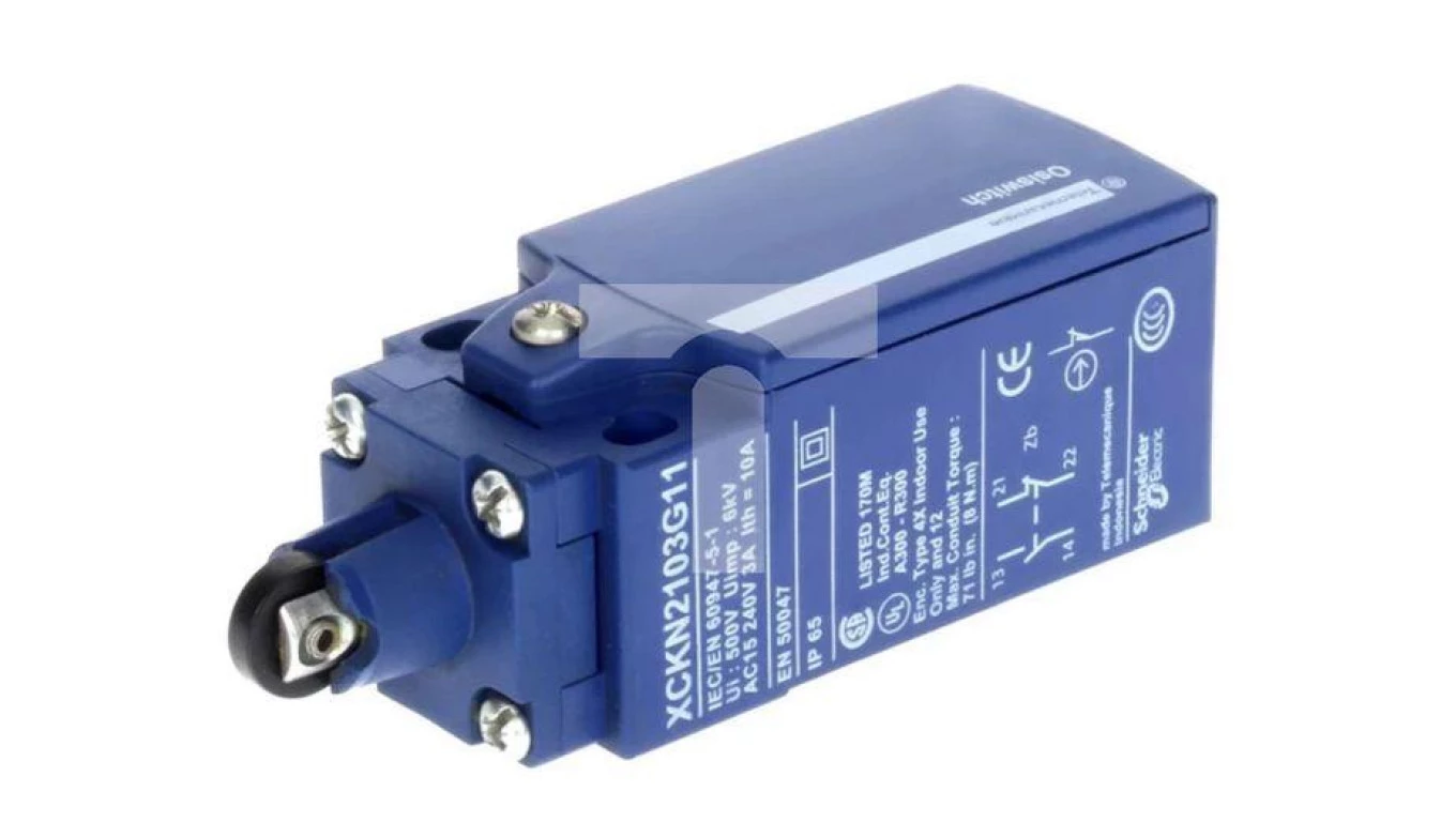 Wyłącznik krańcowy 1R 1Z migowy tworzywo trzpień z rolką popychacza XCKN2103G11