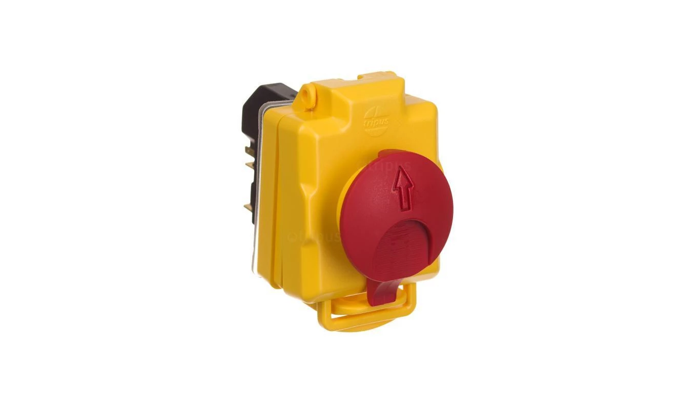 Wyłącznik zanikowonapięciowy do wbudowania 32P0218.01, przyciskowy, 4 styki, 16A, z nakładką STOP z blokadą, dod styk cewki
