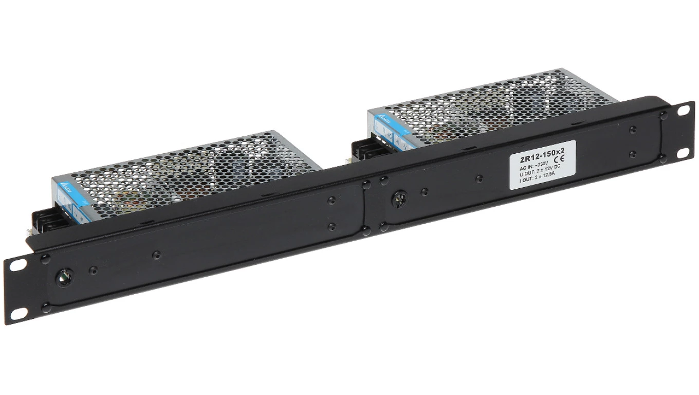 Wysokiej jakości profesjonalny podwójny zasilacz impulsowy z regulacją, 2x12V 2x12,5A 2x150W, Rack 19” 1U, ZR12-150X2