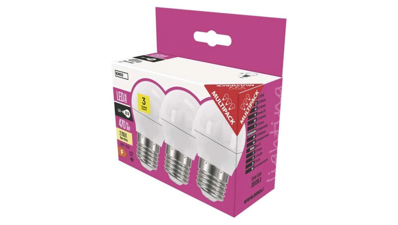 Żarówka LED Classic mini globe 6W E27 ciepła biel 3PK ZQ1120.3 /3szt./