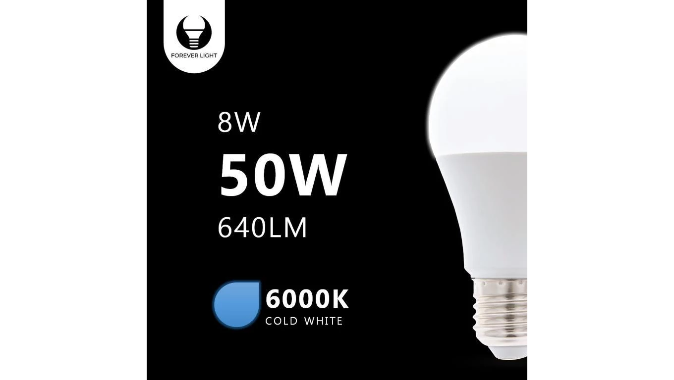Żarówka LED E27 A60 8W 230V 6000K 640lm Forever Light RTV003460