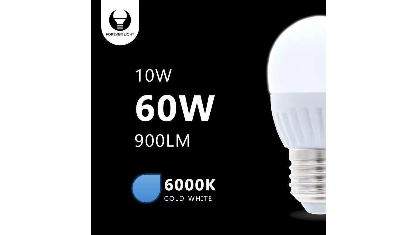 Żarówka LED E27 G45 10W 230V 6000K 900lm ceramiczna Forever Light RTV003471