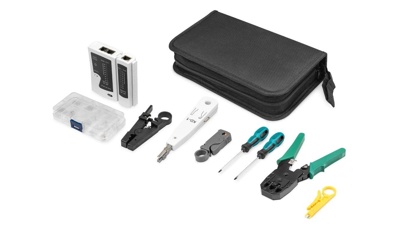 Zestaw narzędzi do wyszukiwania usterek, testowania i montażu nowych instalacji LAN DN-94027