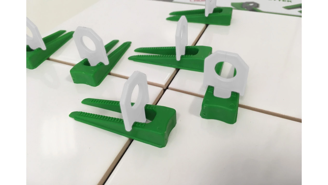 Zestaw Startowy-System poziomowania płytek, 250 klips biały 1 mm +100 klin zielony + Szczypce / Wiadro