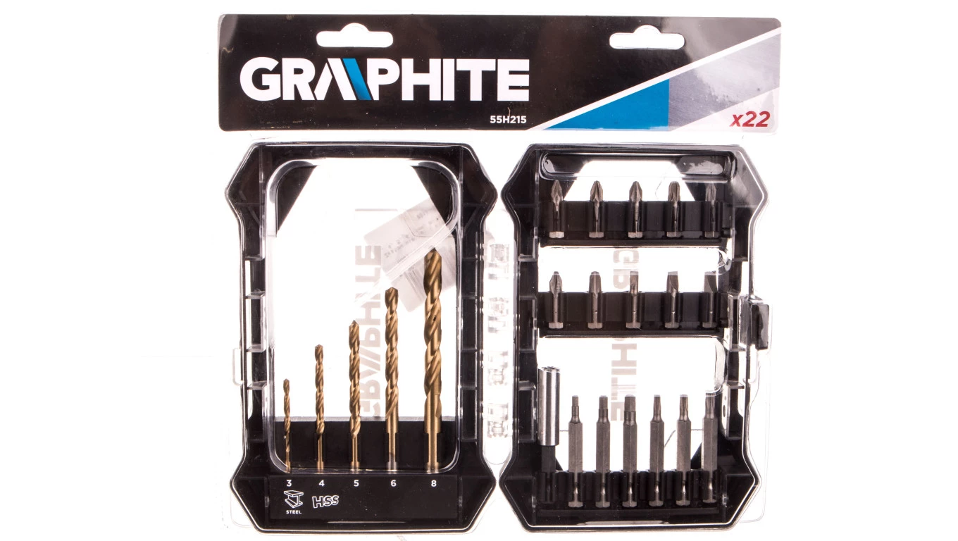 Zestaw wierteł i bitów HSS 3, 4, 5, 6, 8mm, bity 25mm, bity 50mm, /zestaw 22szt./ 55H215