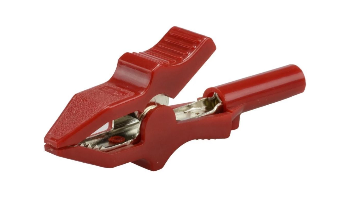 Złącze typu Krokodyl izolowane czerwone HQ z gniazdem na wtyk BANANOWY