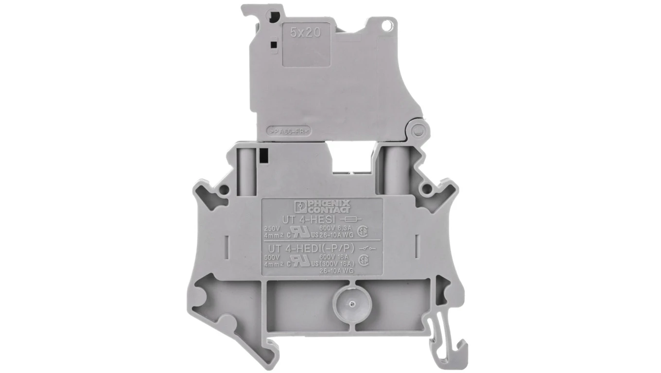 Złączka szynowa z bezpiecznikiem 5x20 6,3A 2-przewodowa 4mm2 szara UT 4-HESI (5X20) 3074169