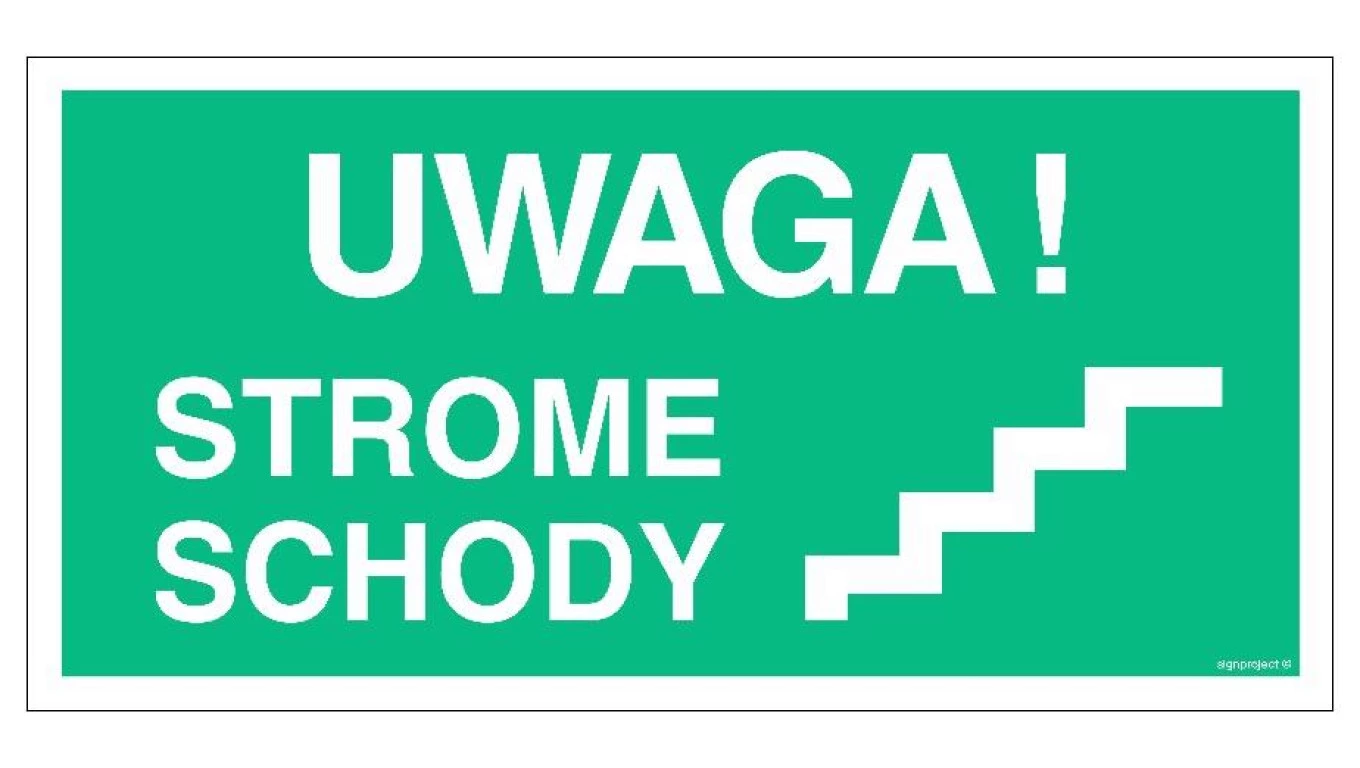 ZNAK - AC024 Uwaga! Strome schody prawostronne 20 x 10 cm TS - Płyta TD foto.