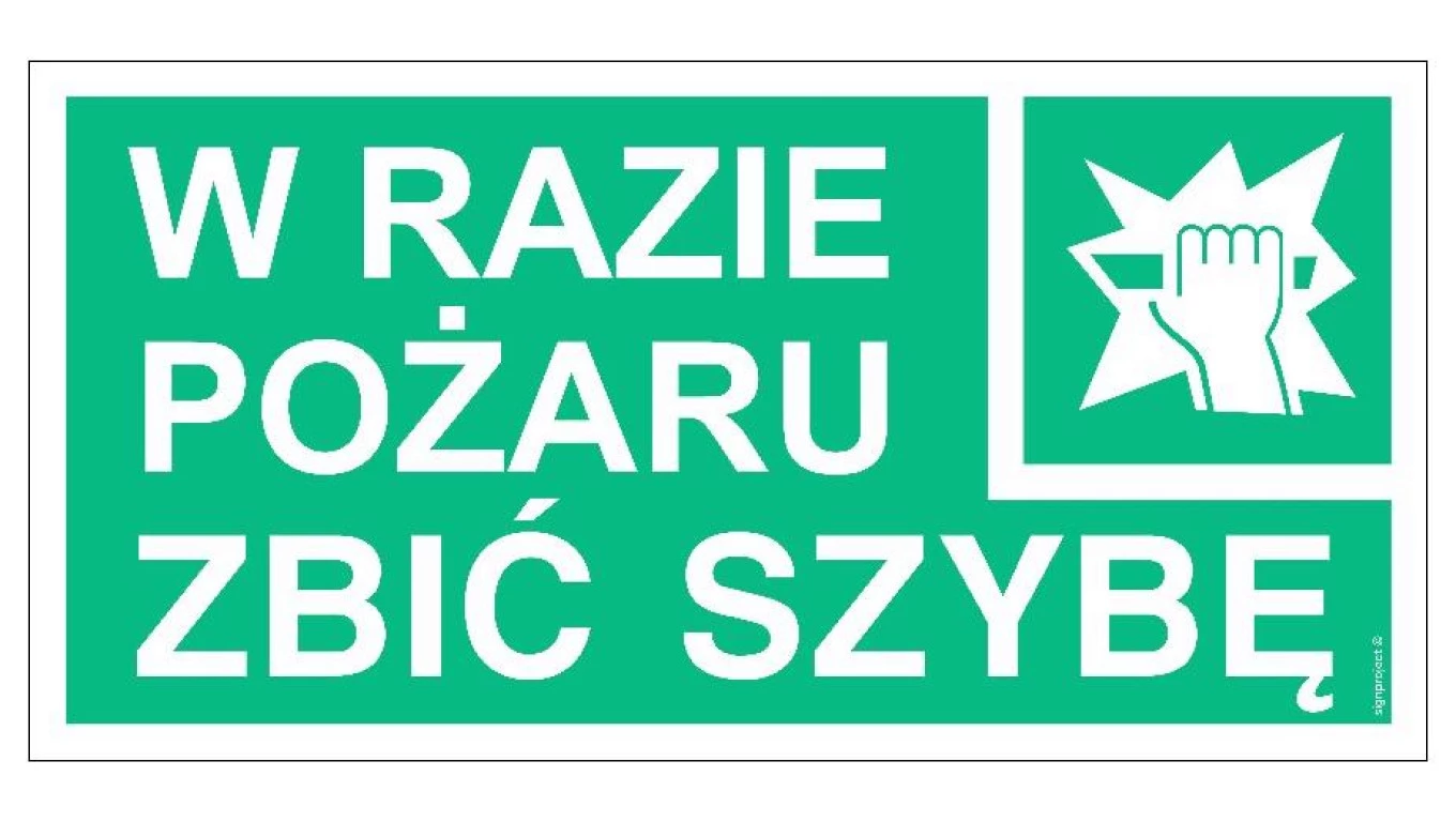 ZNAK - AC040 W razie pożaru zbić szybę 30 x 15 cm TS - Płyta TD foto.
