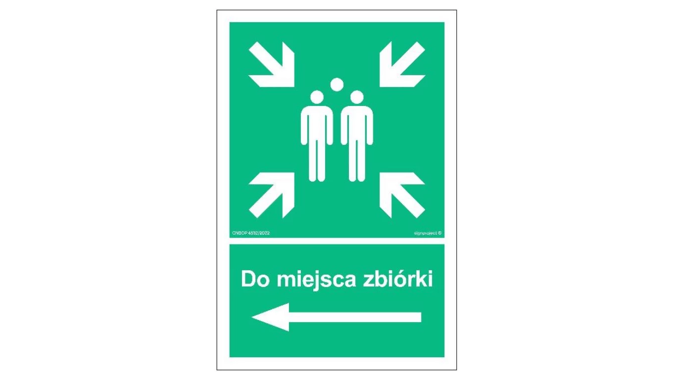 ZNAK - AC041 Do miejsca zbiórki w lewo 15 x 22,5 cm PS - Płyta 1mm foto.