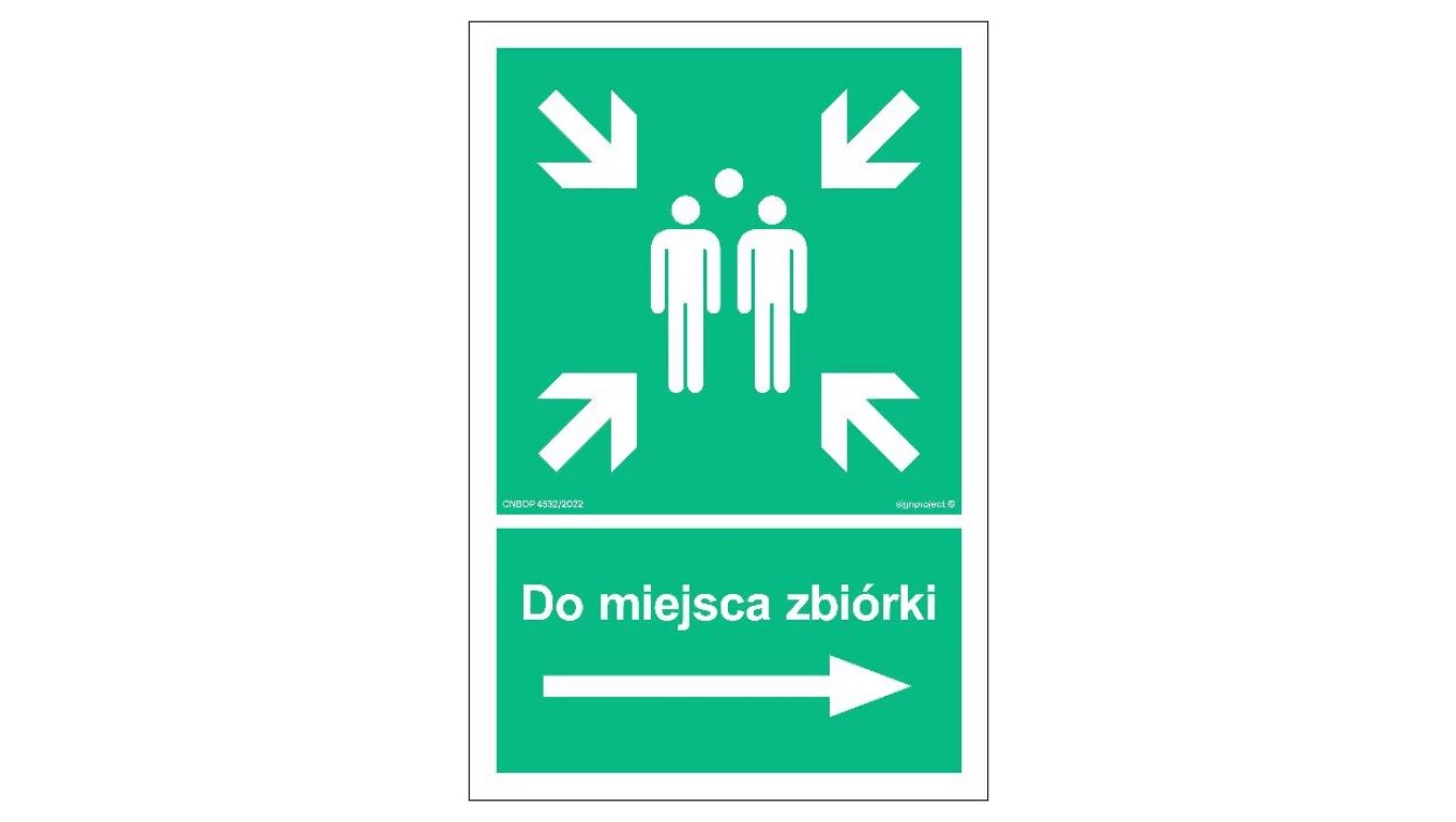 ZNAK - AC042 Do miejsca zbiórki w prawo 35 x 52,5 cm PS - Płyta 1mm foto.