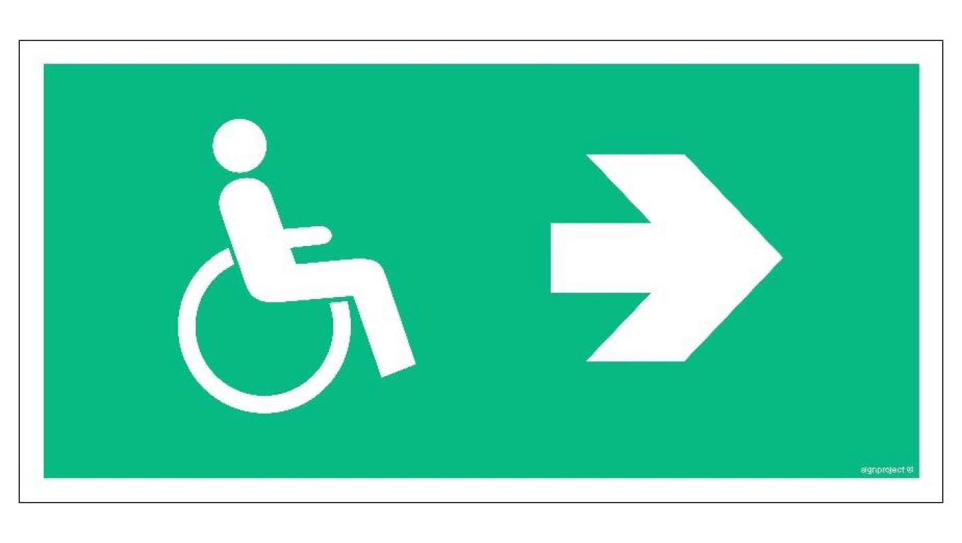 ZNAK - AC059 Kierunek ewakuacji dla niepełnosprawnych w prawo 80 x 40 cm KS - Folia podłogowa foto.