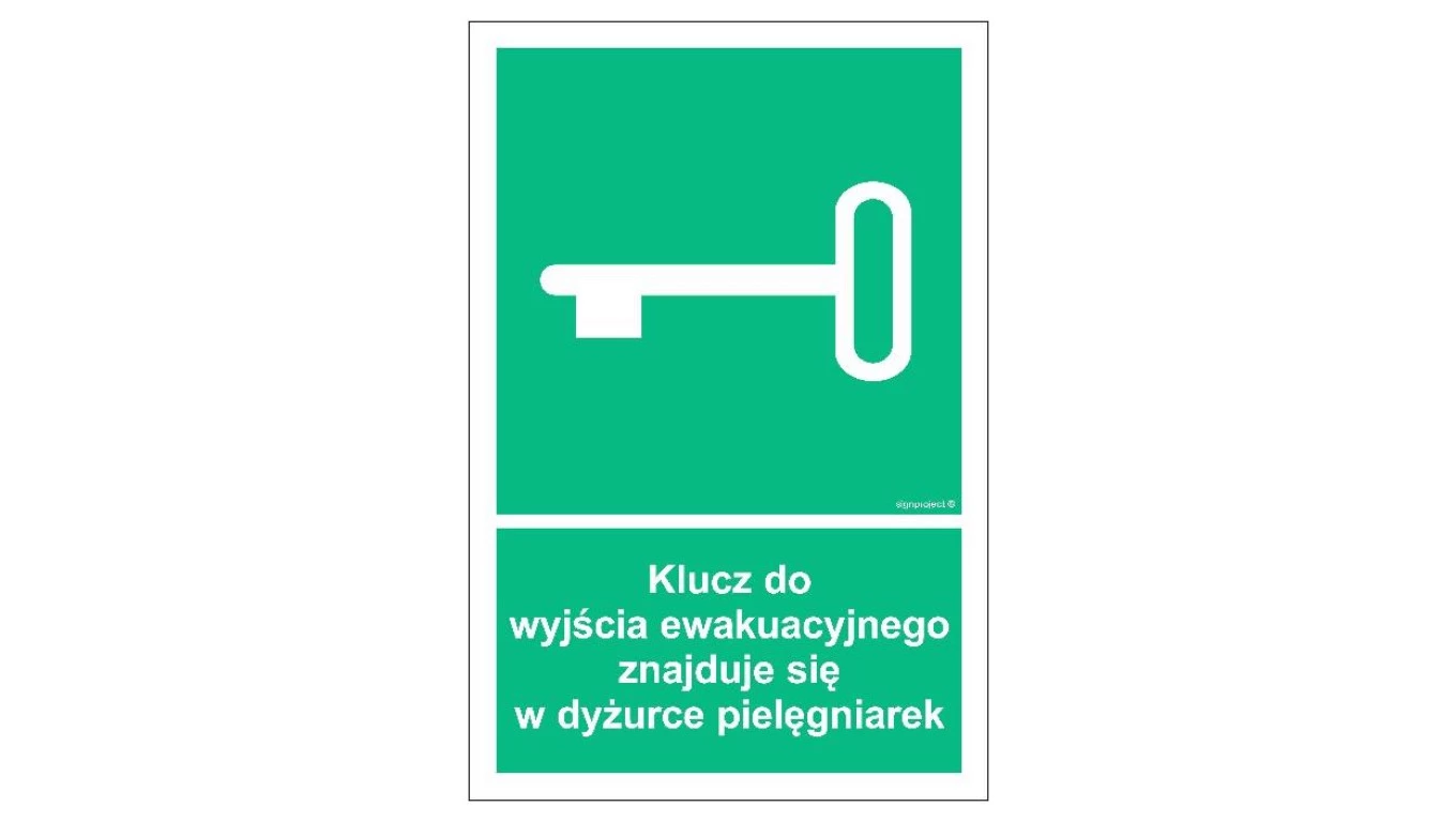 ZNAK - AC066 Klucz do wyjścia ewakuacyjnego znajduje się w dyżurce pielęgniarek 35 x 52,5 cm FS - Folia samoprzylepna foto.