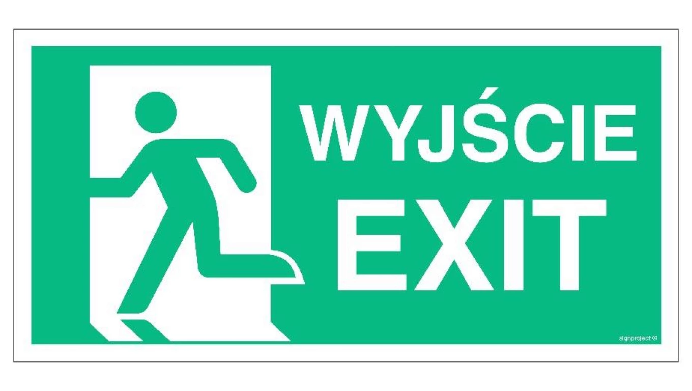 ZNAK - AC076 Wyjście / EXIT lewostronne 20 x 10 cm PS - Płyta 1mm foto.