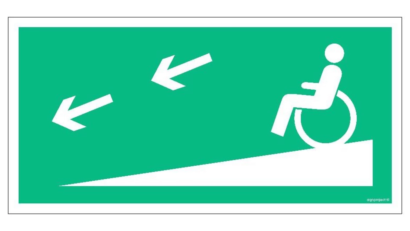ZNAK - AC079 Droga ewakuacyjna dla niepełnosprawnych lewostronna 60 x 30 cm PS - Płyta 1mm foto.