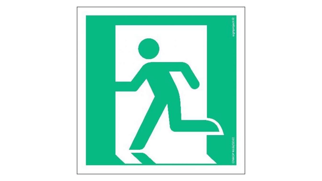 ZNAK - AE001 Wyjście ewakuacyjne lewostronne 35 x 35 cm TS - Płyta TD foto.