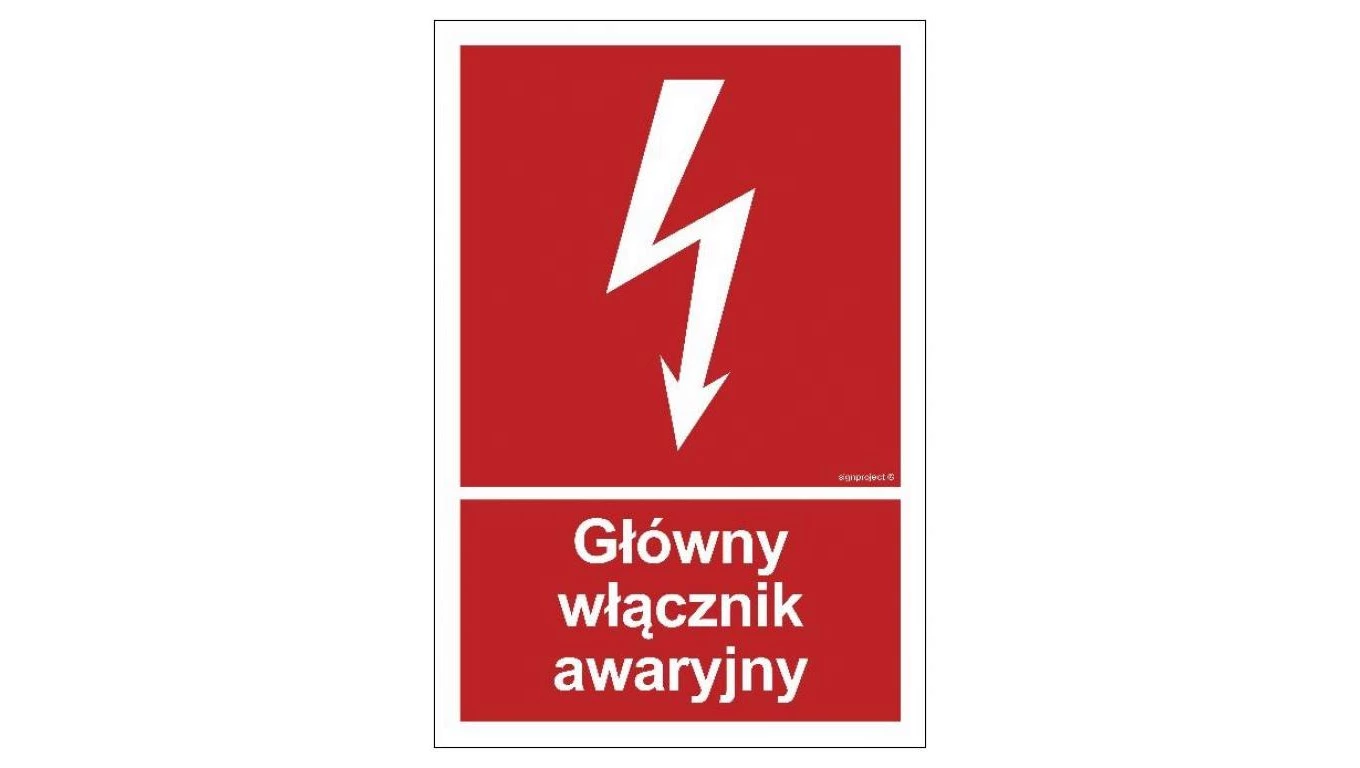 ZNAK - BC035 Główny włącznik awaryjny 10 x 14,8 cm KN - Folia podłogowa
