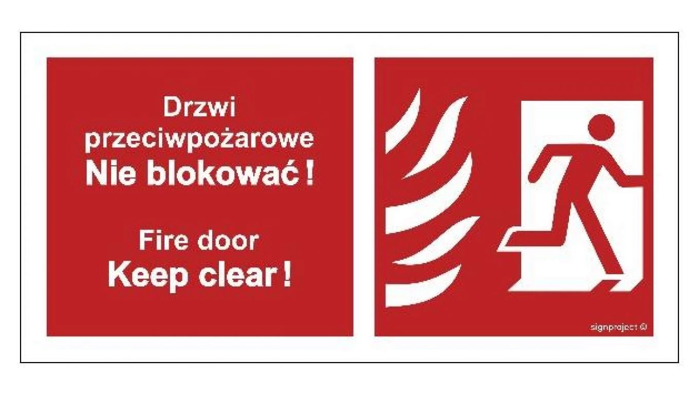 ZNAK - BC049 Drzwi przeciwpożarowe, Nie blokować ! Fire door, Keep clear ! prawostronne 30 x 15 cm TS - Płyta TD foto.