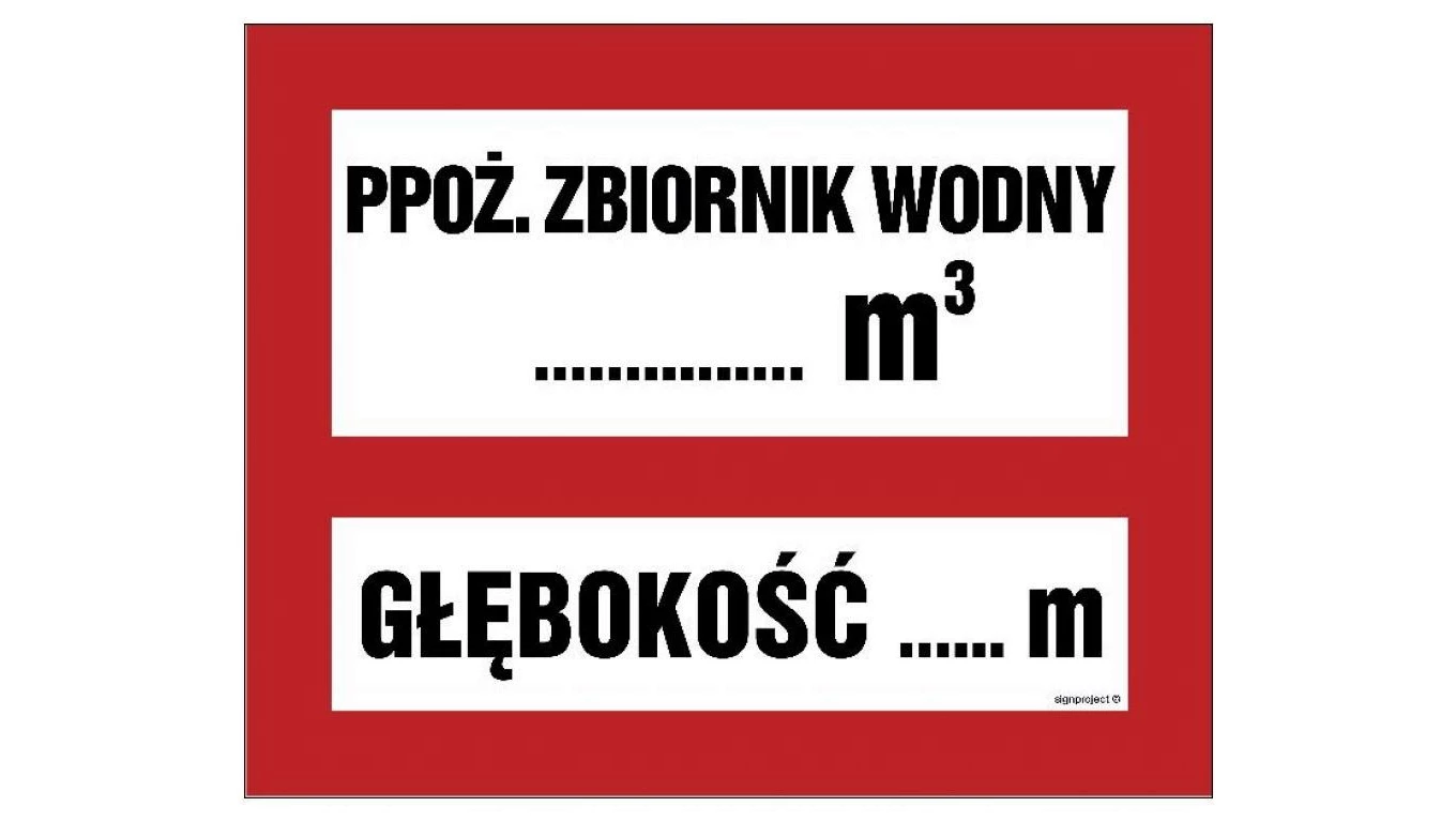 ZNAK - BC117 Ppoż.zbiornik wody ... m3 głębokość zbiornika ... m 50 x 40 cm PS - Płyta 1mm foto.