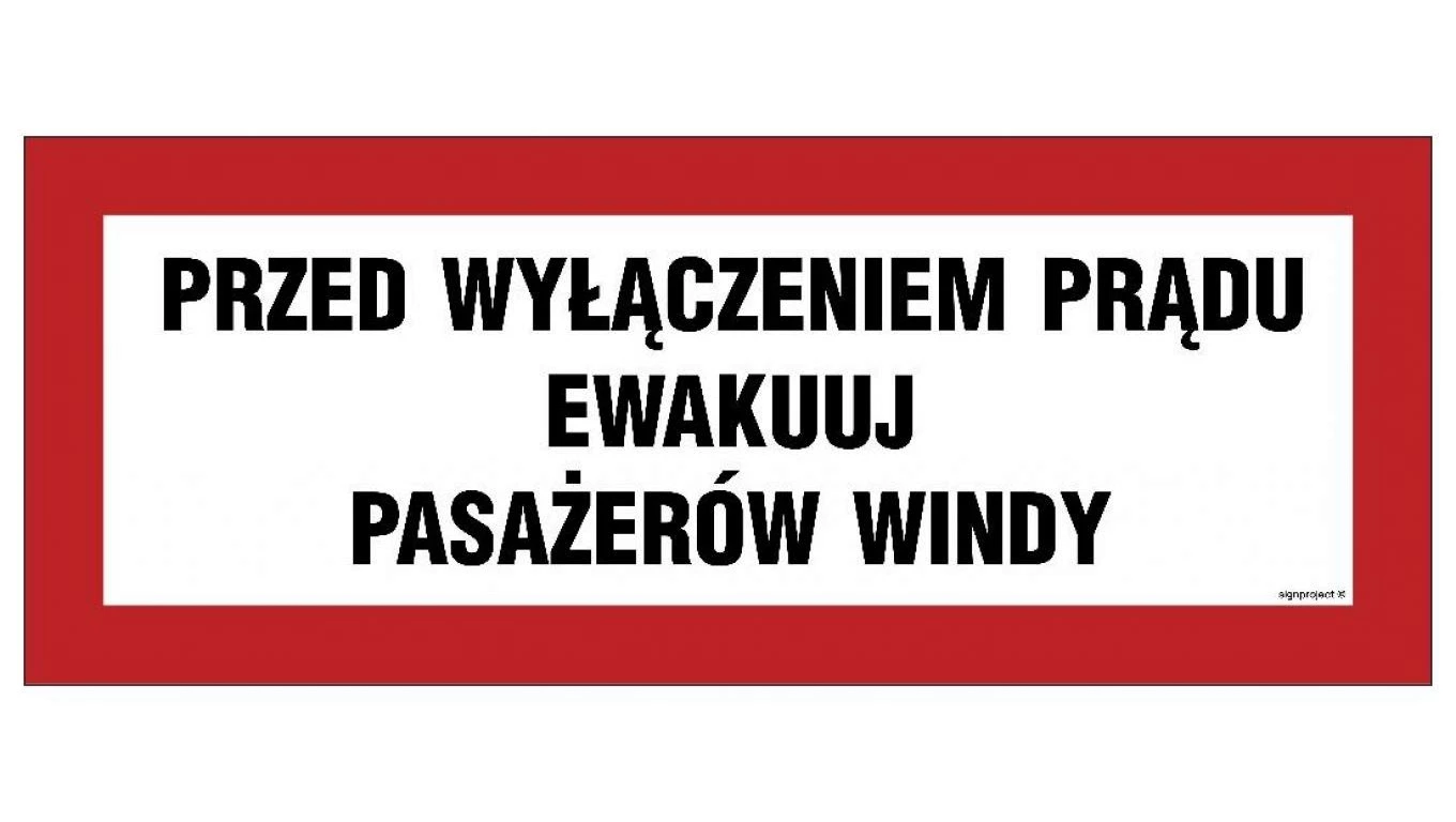 ZNAK - BC129 Przed wyłączeniem prądu ewakuuj pasażerów windy 36 x 14 cm FS - Folia samoprzylepna foto.