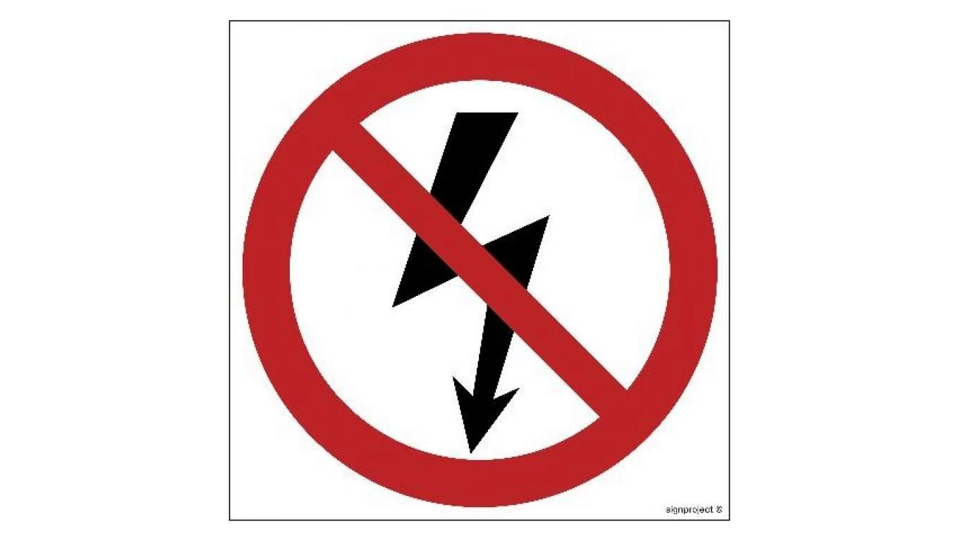 ZNAK - GB005 Nie załączać urządzeń elektrycznych 25 x 25 cm FN - Folia samoprzylepna
