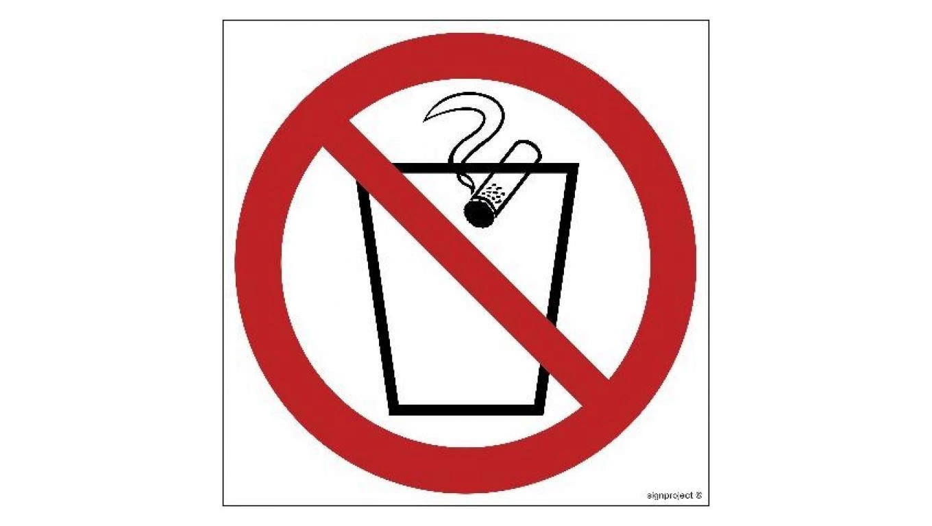 ZNAK - GB018 Zakaz wrzucania niedopałków do kosza 15 x 15 cm KS - Folia podłogowa foto.