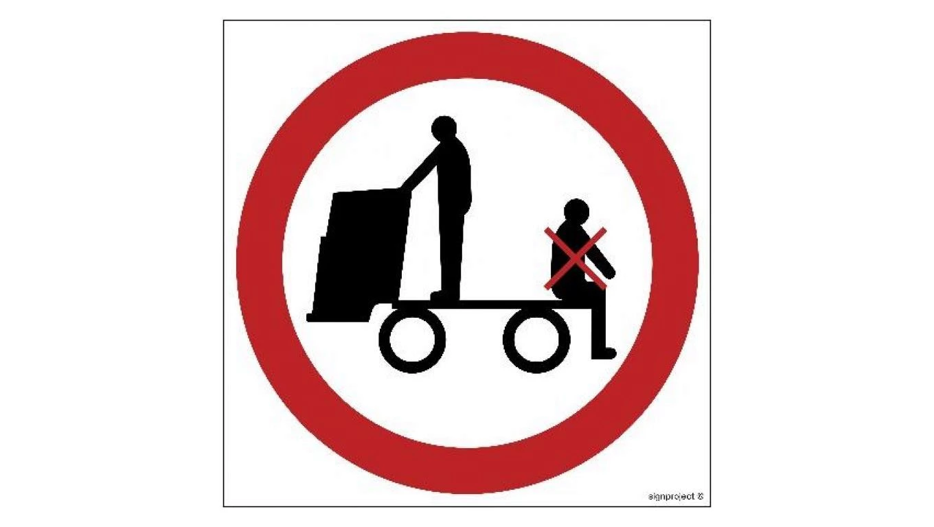 ZNAK - GB028 Zakaz jazdy na urządzeniach transportowych 25 x 25 cm KN - Folia podłogowa