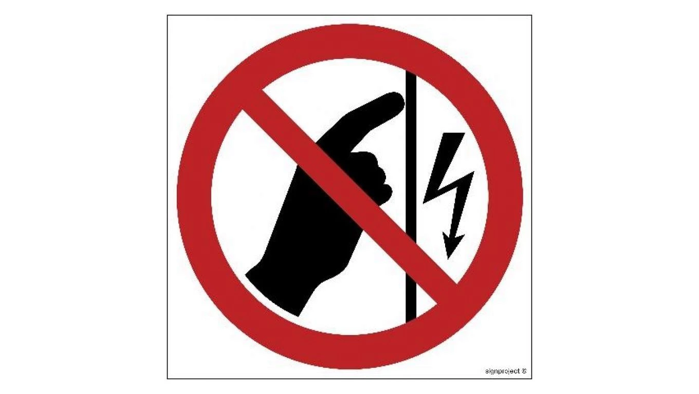 ZNAK - GB031 Nie dotykać urządzenie pod napięciem 20 x 20 cm FN - Folia samoprzylepna