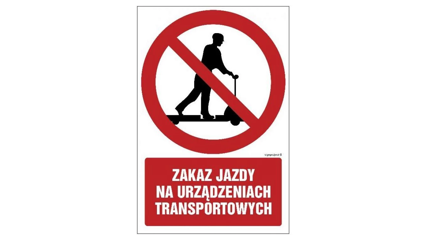 ZNAK - GC015 Zakaz jazdy na urządzeniach transportowych 20 x 30 cm PS - Płyta 1mm foto.