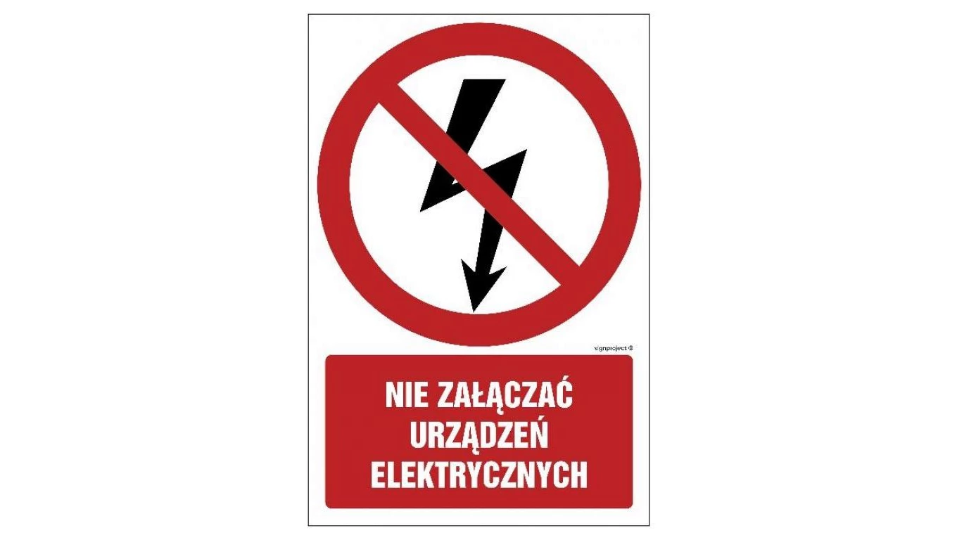 ZNAK - GC019 Nie załączać urządzeń elektrycznych - arkusz 9 naklejek 5 x 7,5 cm FS - Folia samoprzylepna foto.