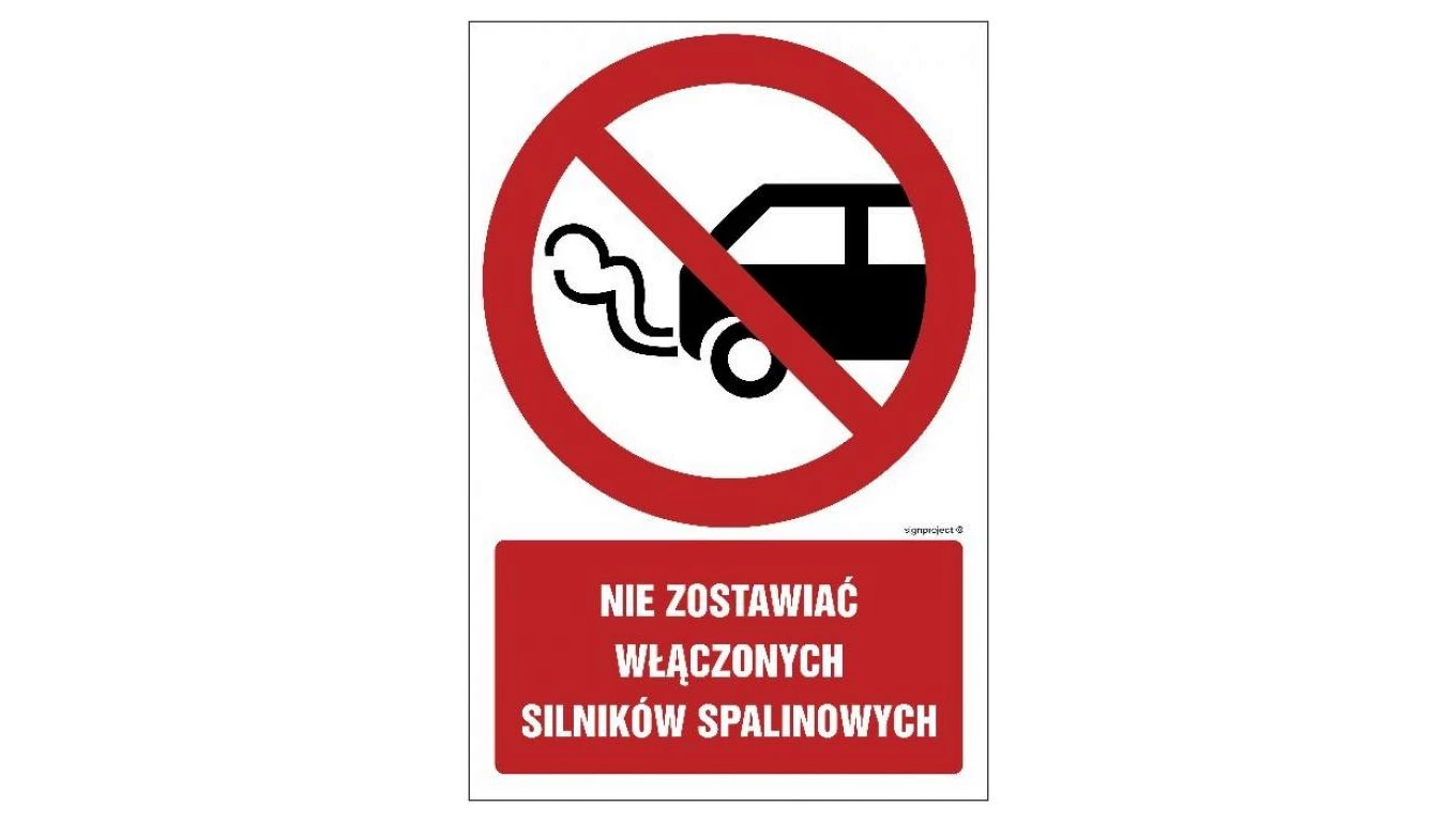 ZNAK - GC020 Nie zostawiać włączonych silników spalinowych 70 x 105 cm PN - Płyta 1mm
