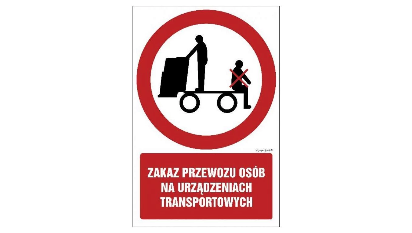ZNAK - GC058 Zakaz przewozu osób na urządzeniach transportowych 30 x 45 cm KS - Folia podłogowa foto.