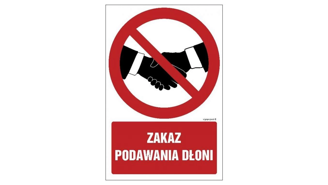 ZNAK - GC091 Zakaz podawania dłoni - opakowanie 10 sztuk 5 x 7,5 cm PS - Płyta 1mm foto.