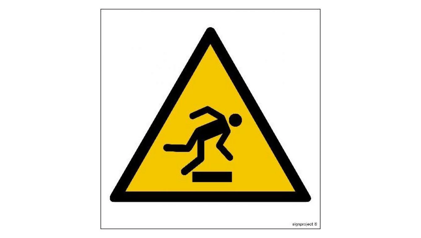 ZNAK - GD007 Ostrzeżenie przed niebezpieczeństwem potknięcia się 15 x 15 cm PN - Płyta 1mm