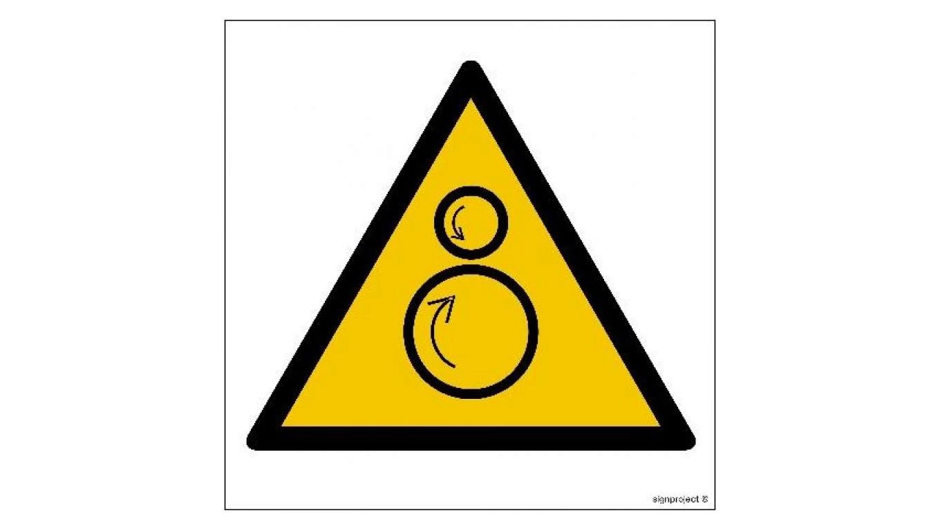 ZNAK - GD025 Ostrzeżenie przed ruchomymi rolkami 10 x 10 cm FN - Folia samoprzylepna
